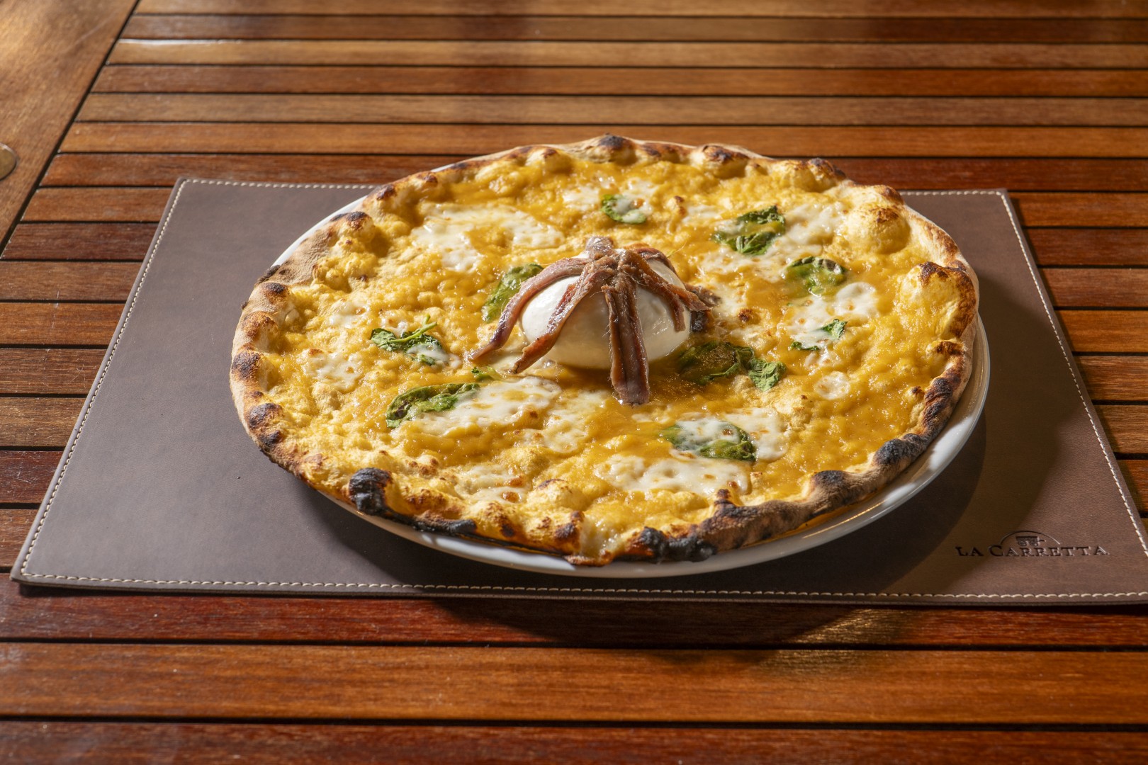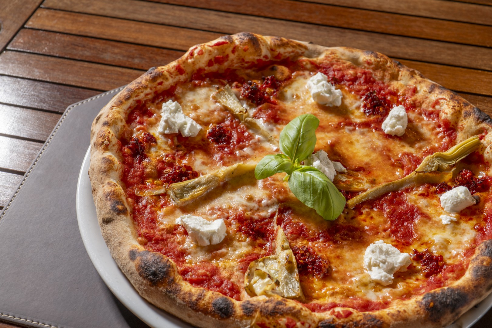Pomodoro, fior di latte, nduja, formaggio caprino, carciofo alla romana (1,7)